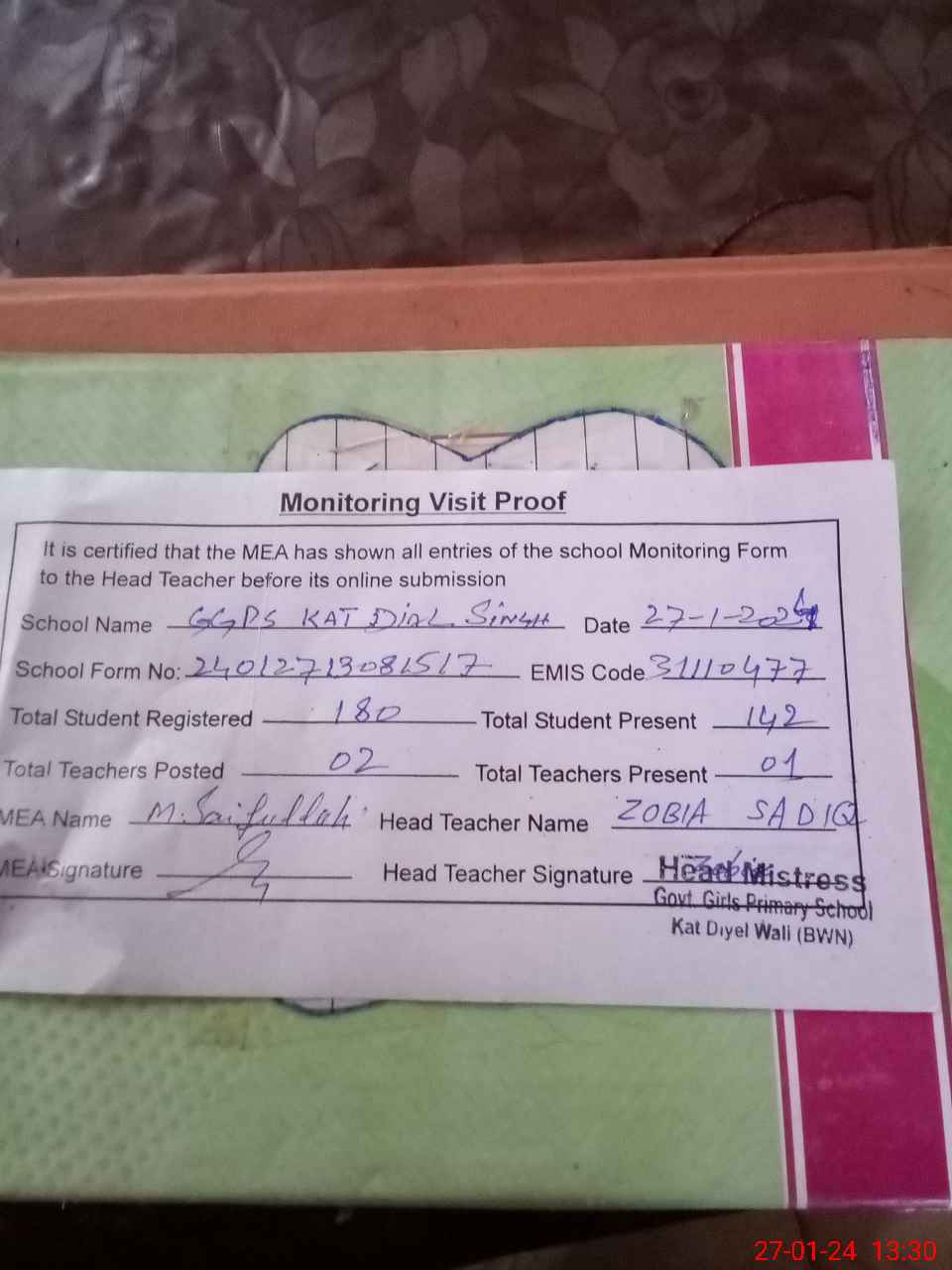 | EMIS Code: 31110477 | Name of School: GGPS KOT DIAL WALI | |||