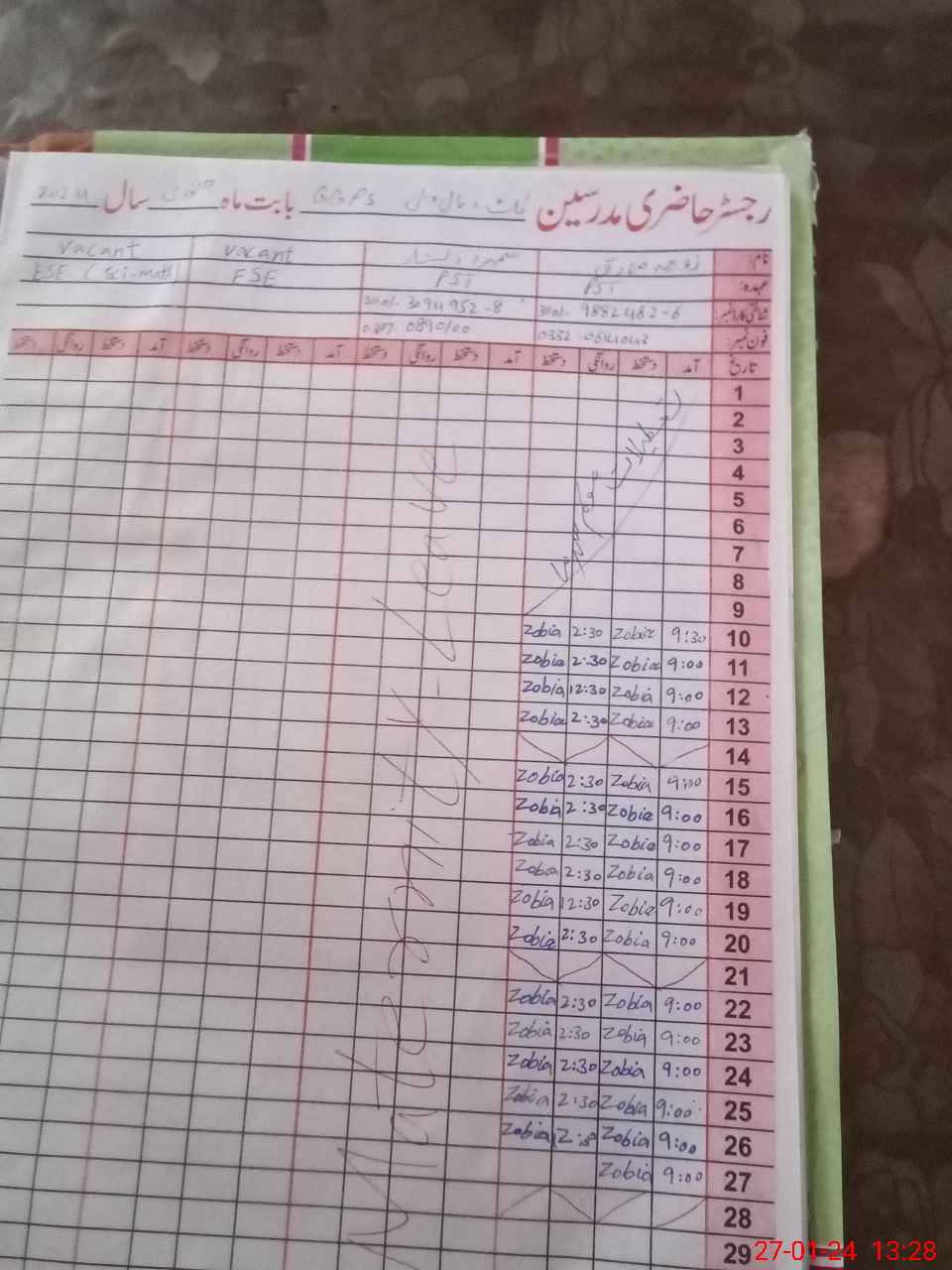 | Name: ZO**** SA**** Designation: (School Headmaster's/Headmistress's) ESE Sci Phone/Cell Number: 03**** |