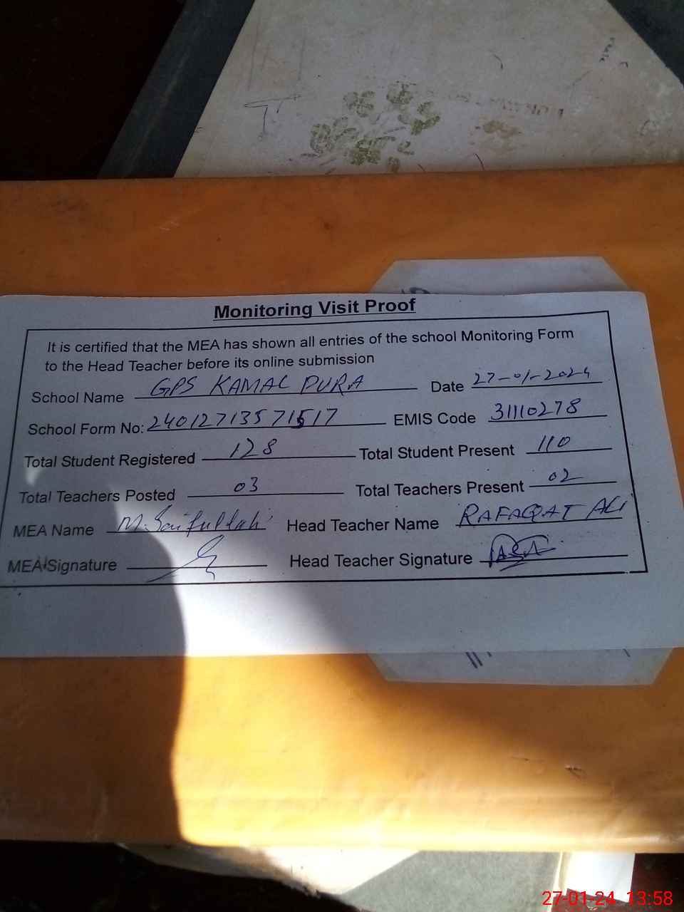 | EMIS Code: 31110278 | Name of School: GPS KAMAL PURA | |||