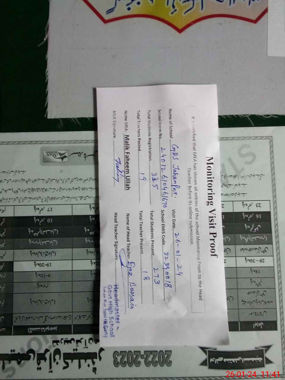 | EMIS Code: 32340018 | Name of School: GHS JAHAN PUR | |||