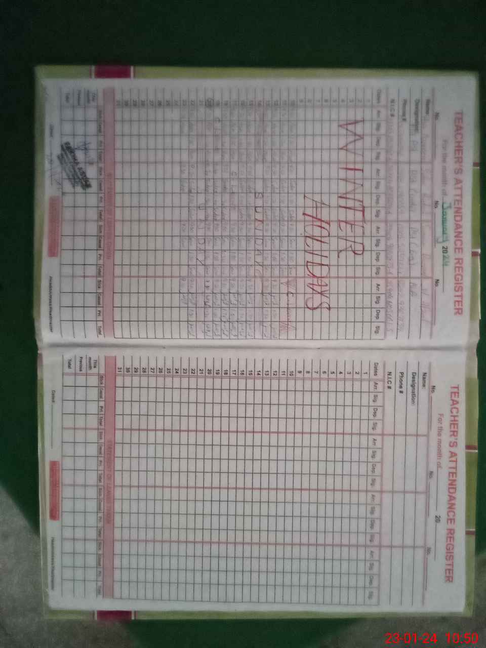 | CNIC | Full Name | Designation | R/C | Absence During Last Calender Month |