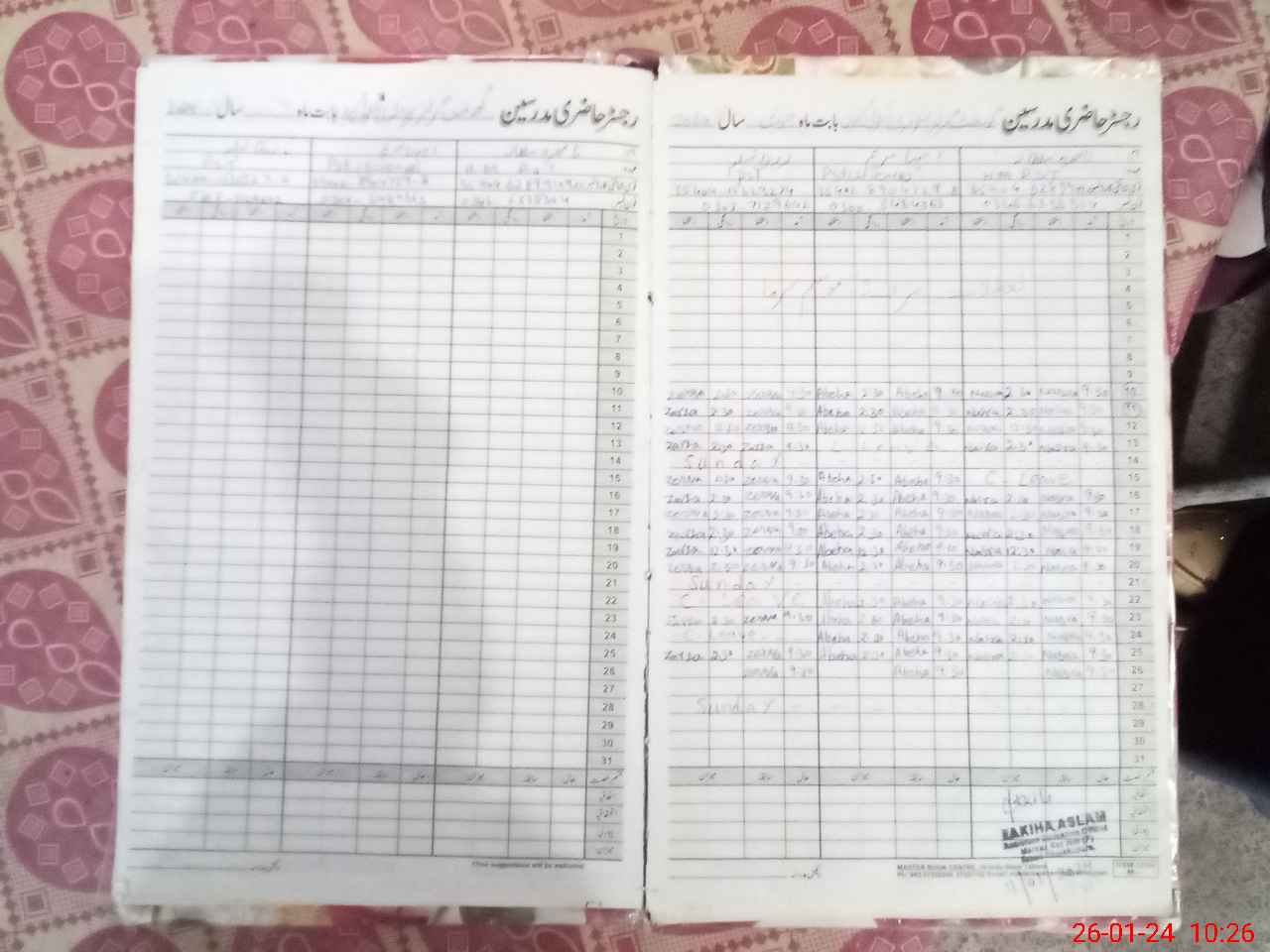 | CNIC | Full Name | Designation | R/C | Absence During Last Calender Month |