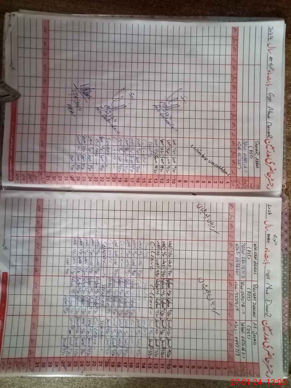 | CNIC | Full Name | Designation | R/C | Absence During Last Calender Month |