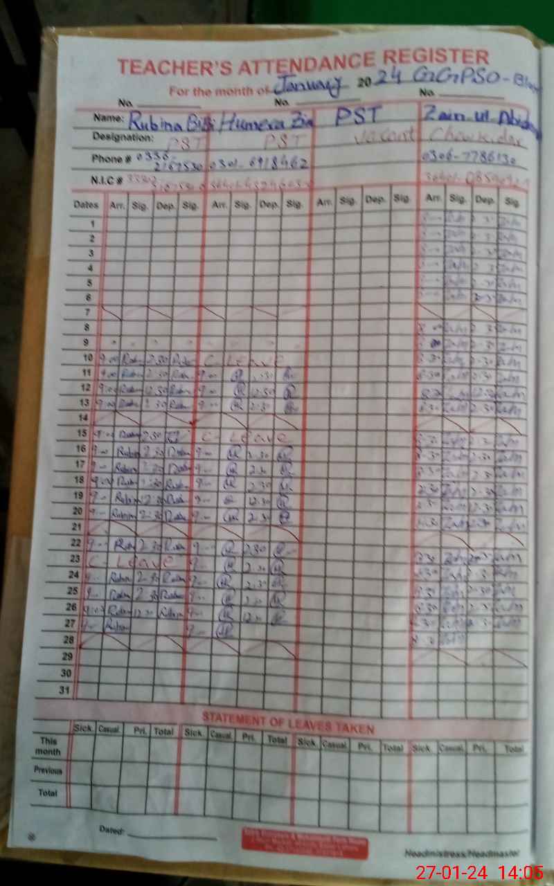 | Name: AZ**** PA**** Designation: (School Headmaster's/Headmistress's) PST Phone/Cell Number: 03**** |
