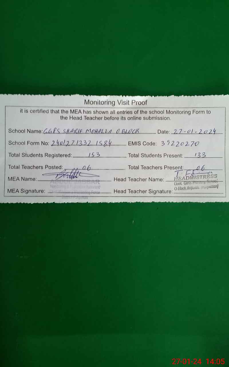 | EMIS Code: 39220270 | Name of School: GGPS SHARIF MOHALLA O-BLOCK | |||