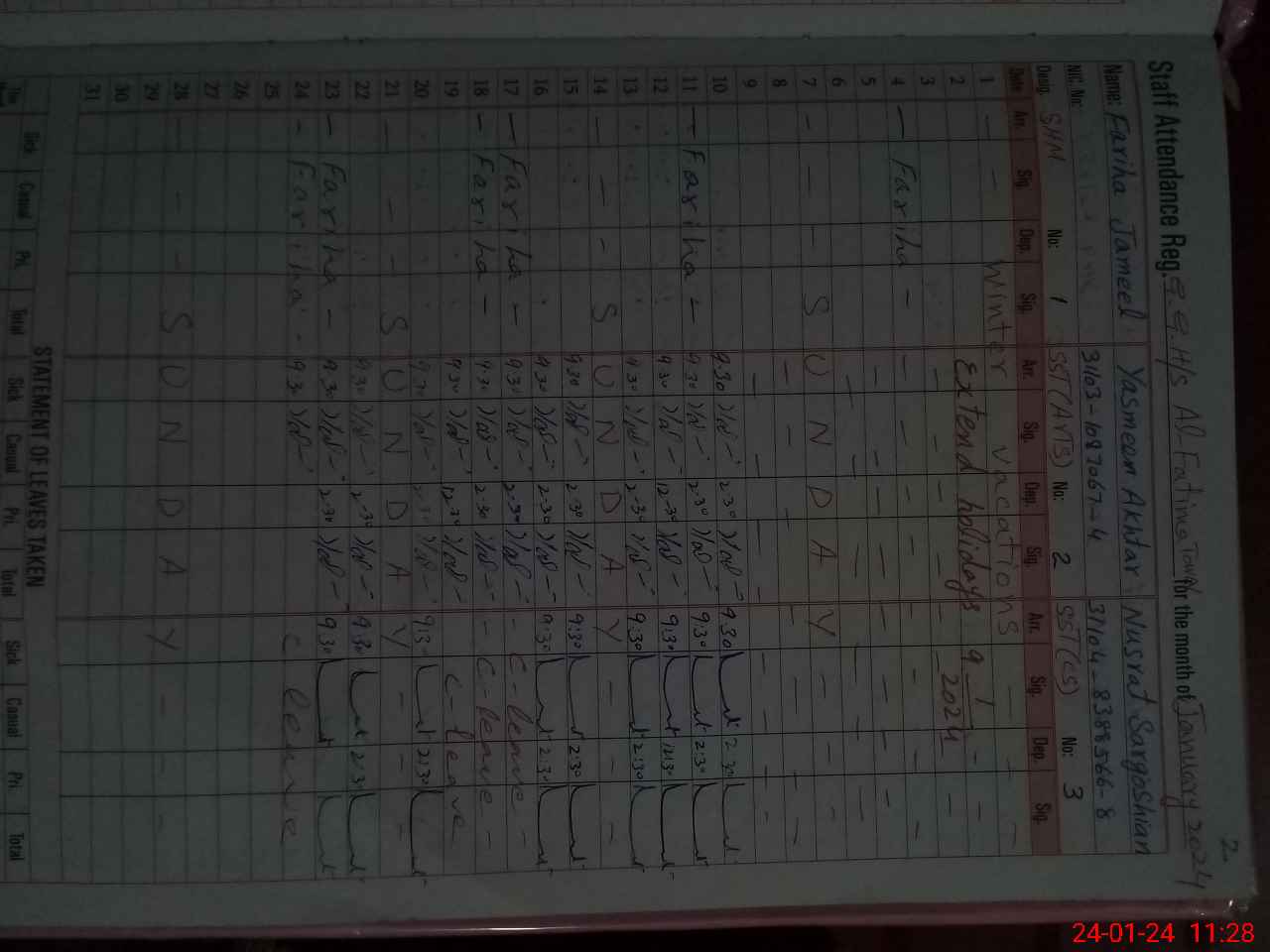 | CNIC | Full Name | Designation | R/C | Absence During Last Calender Month |