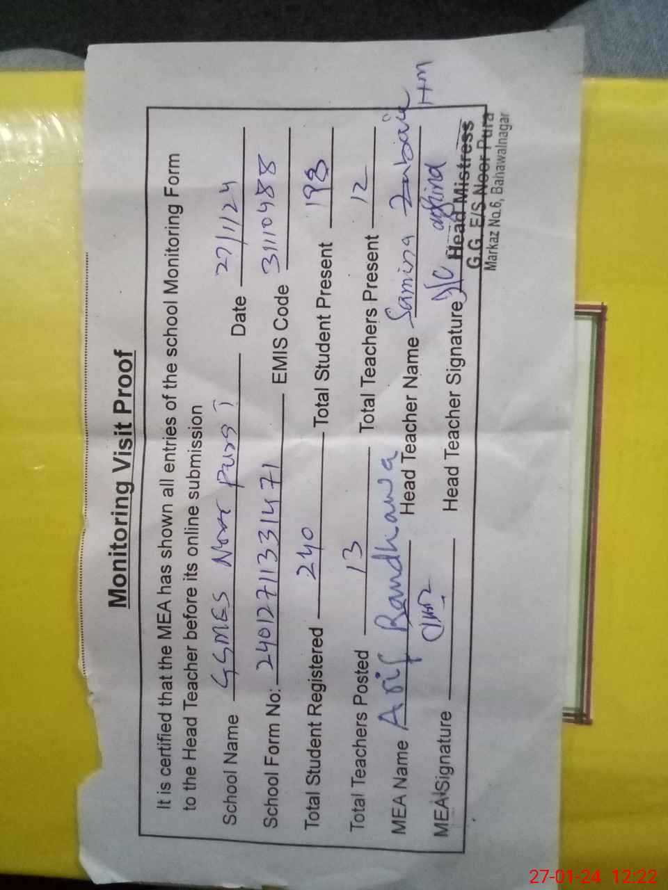 | EMIS Code: 31110488 | Name of School: GGES NOOR PURA NO 1 | |||