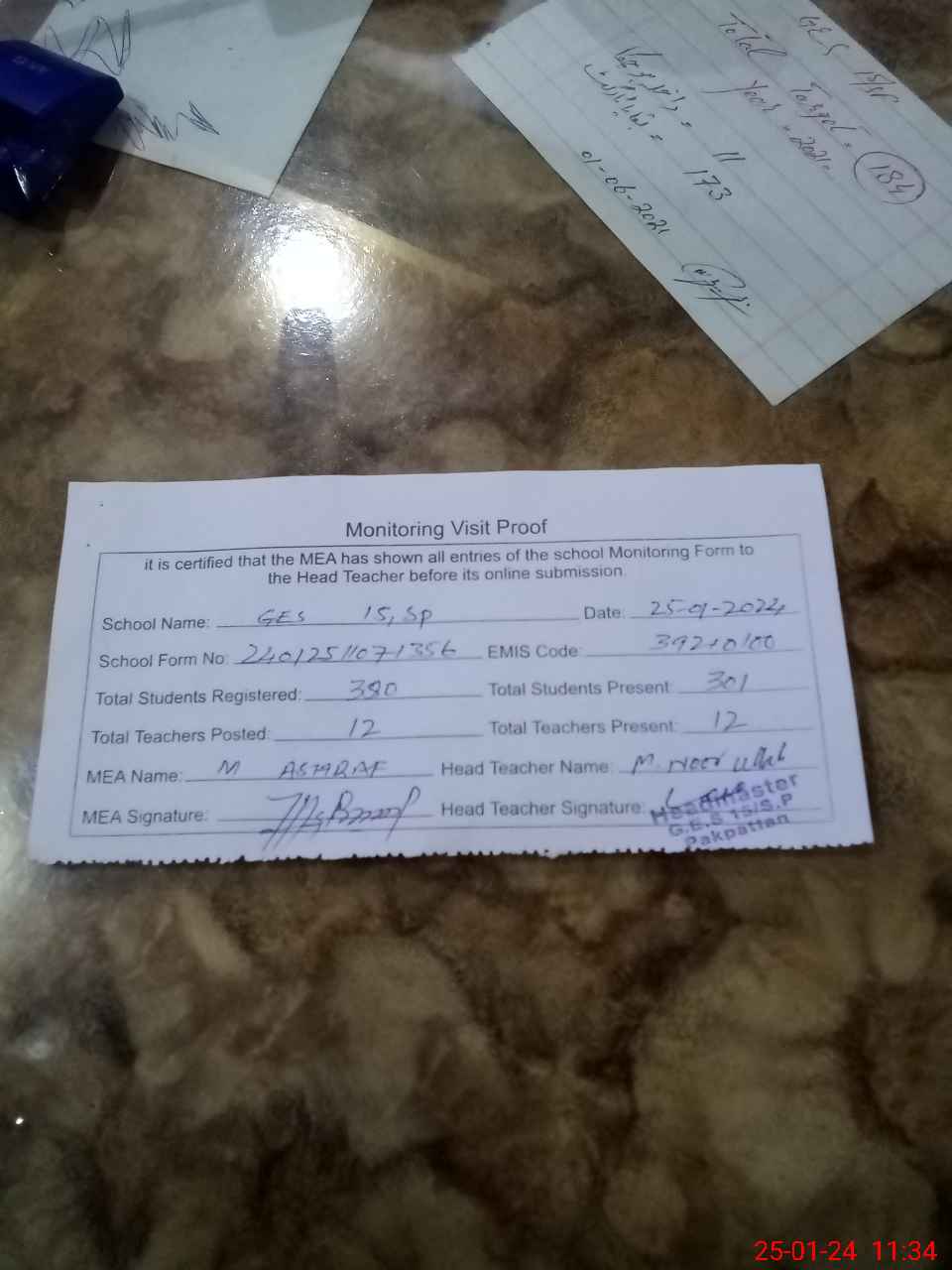 | EMIS Code: 39210100 | Name of School: GES 15/SP P.O PAKPATTAN | |||