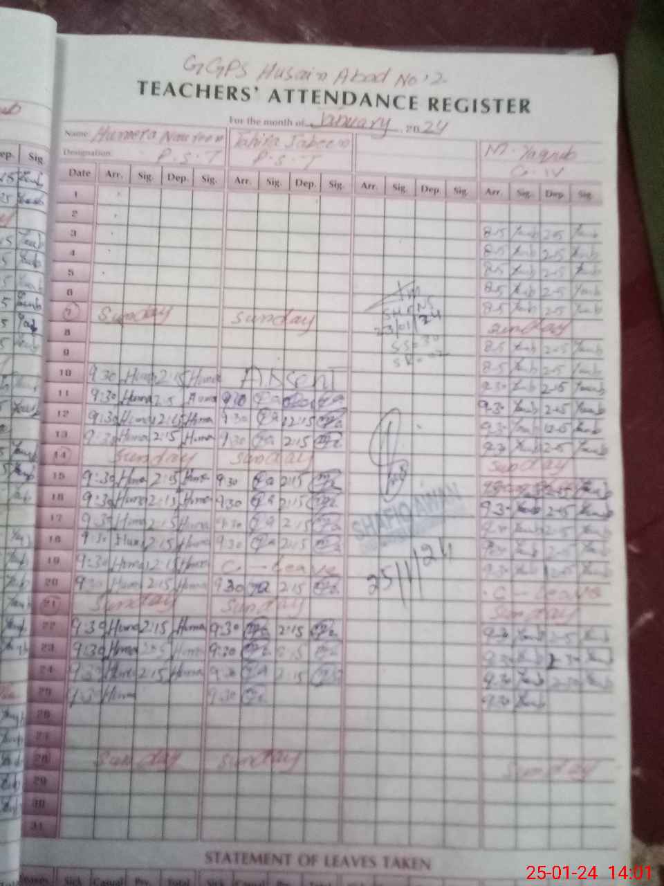 | CNIC | Full Name | Designation | R/C | Absence During Last Calender Month |