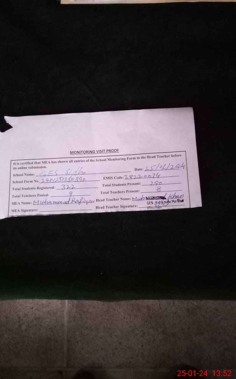 | EMIS Code: 38220074 | Name of School: GES SIDHA WALA | |||