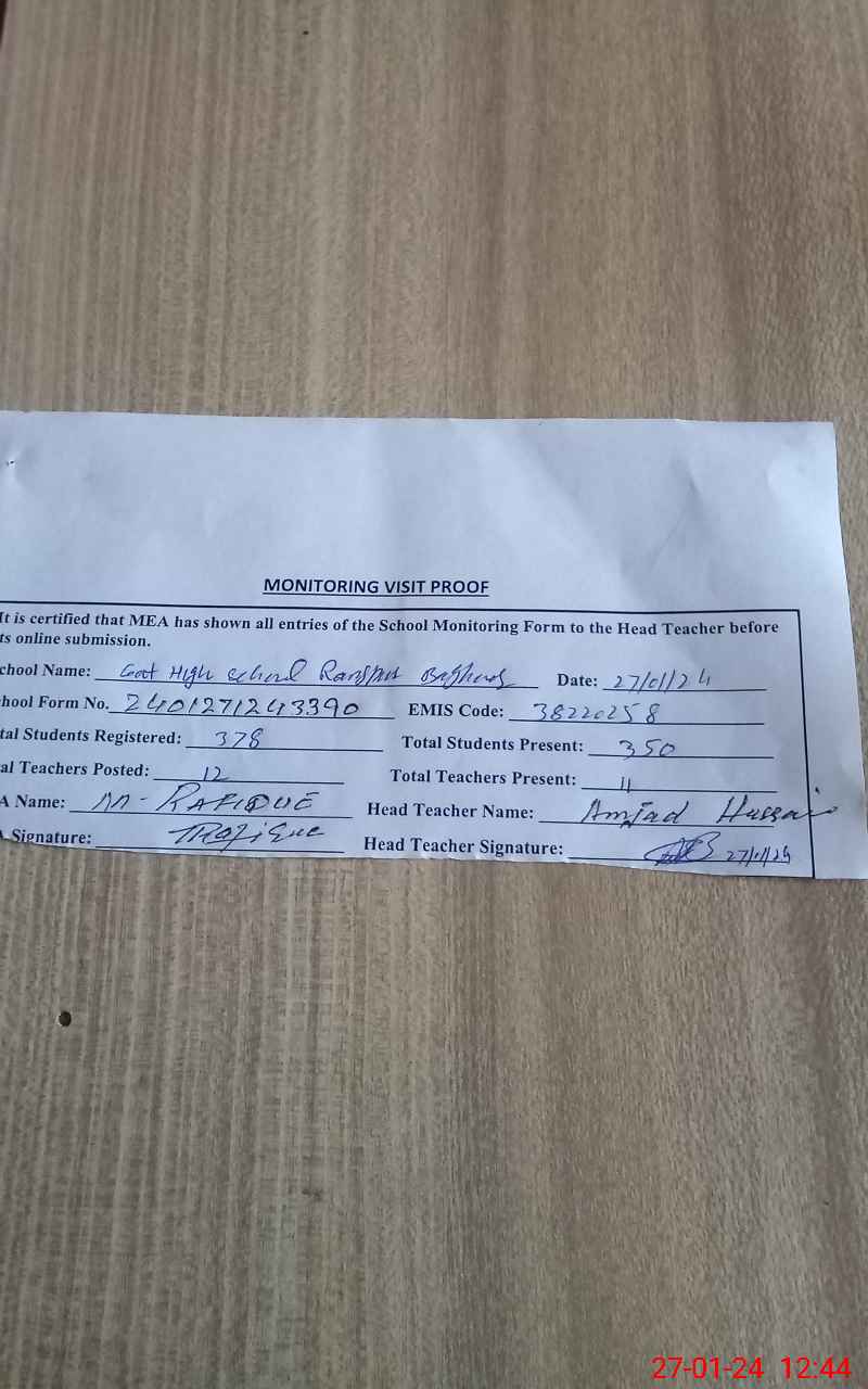 | EMIS Code: 38220258 | Name of School: GHS RANGPUR BAGHOOR | |||