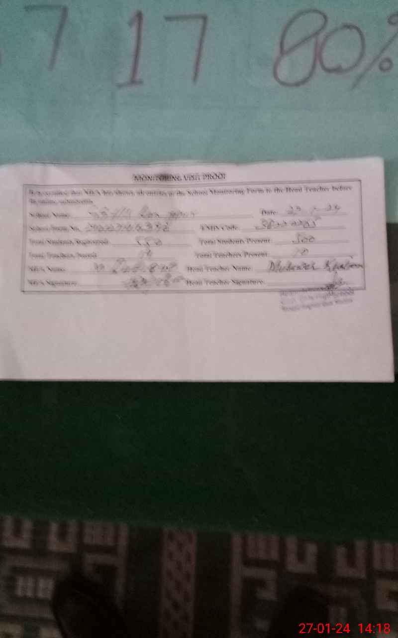 | Attendance Register | Head Teacher | MEA with School | Visit Proof |