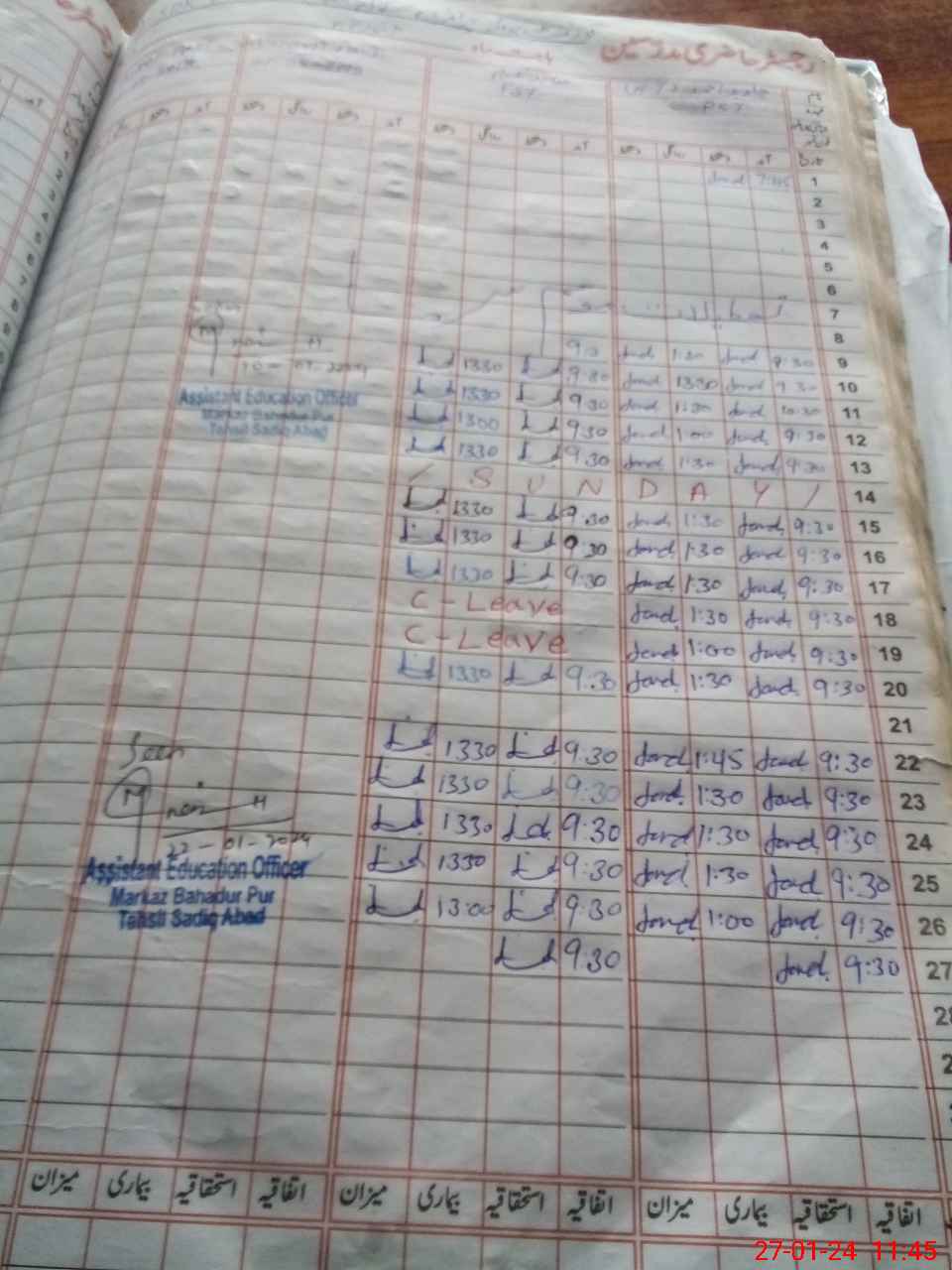 | CNIC | Full Name | Designation | R/C | Absence During Last Calender Month |