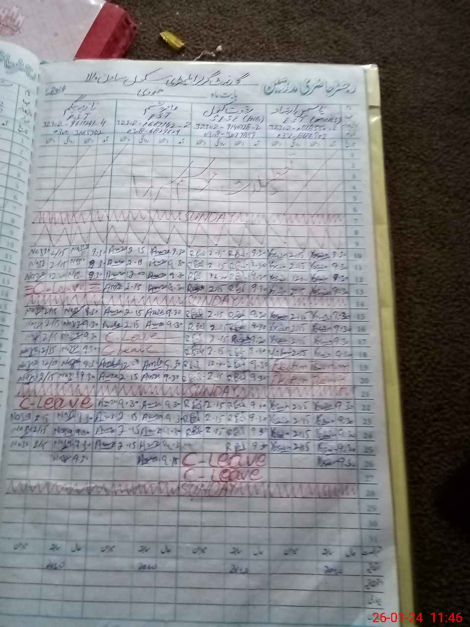 | Leave | Duty | Absent | Maternity | Medical | Ex- Pak |