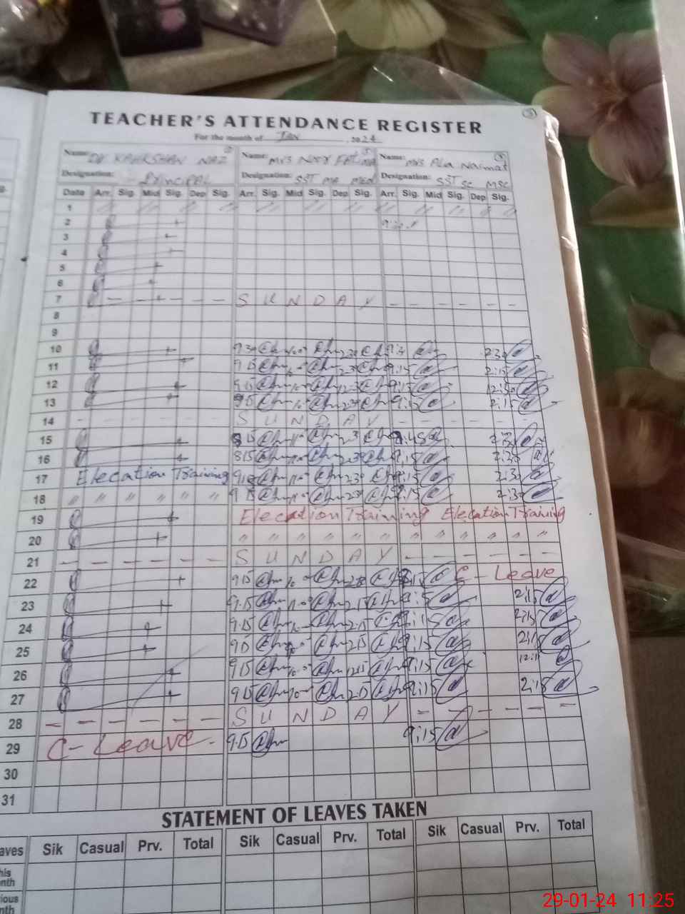 | 36**** | So**** Ma**** | CIV | Regular | 0 | 0 | 0 | 0 | 0 | 0 | 0 | 0 | 0 | Casual |