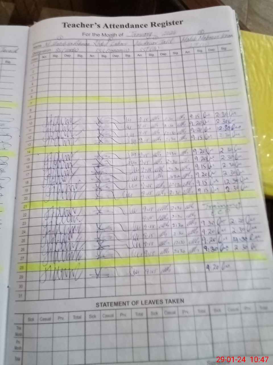 | CNIC | Full Name | Designation | R/C | Absence During Last Calender Month |