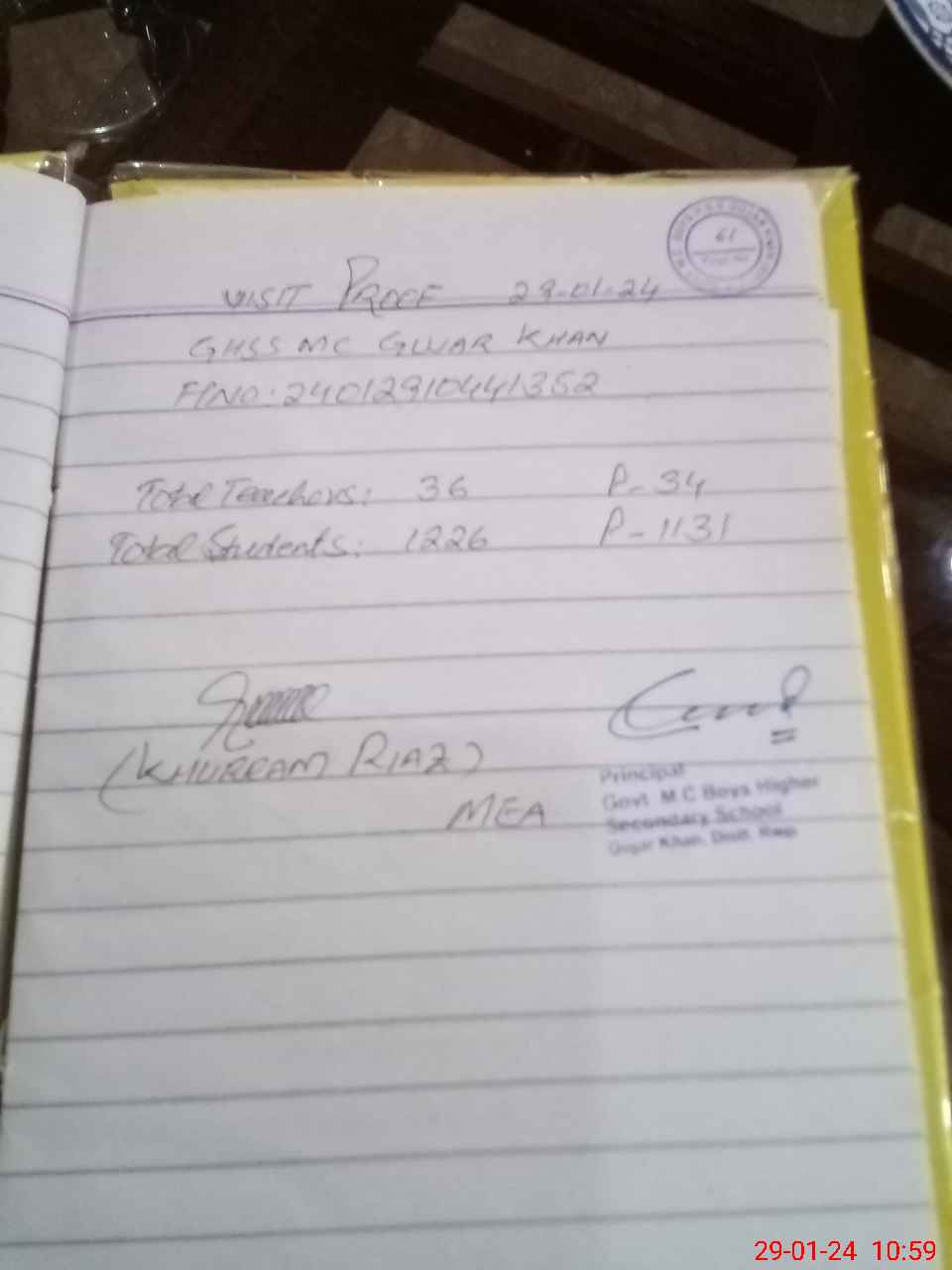 | Attendance Register | Head Teacher | MEA with School | Visit Proof |