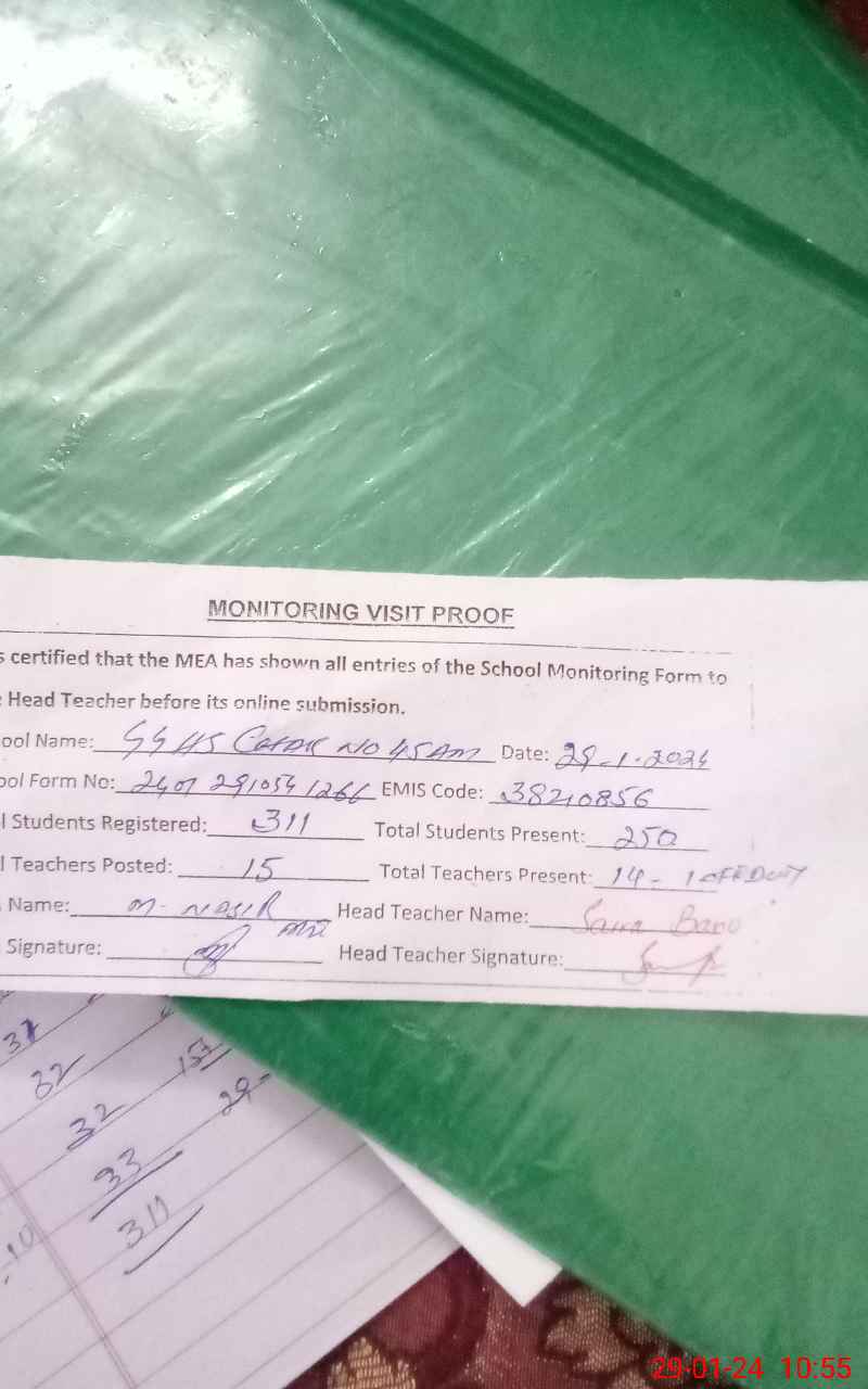 | EMIS Code: 38210856 | Name of School: GGHS CHAK NO. 45-AMB | |||