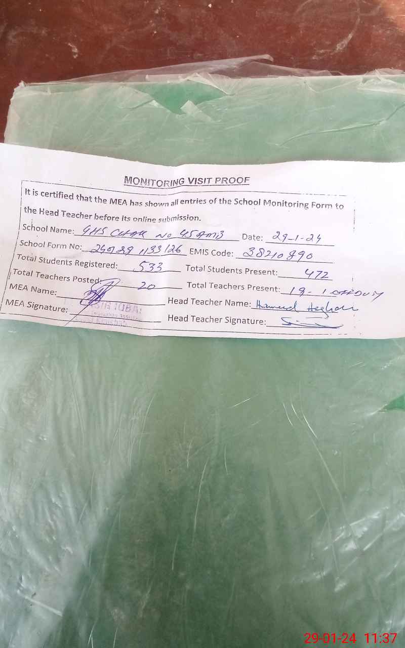 | EMIS Code: 38210890 | Name of School: GHS CHAK NO. 45 AMB | |||