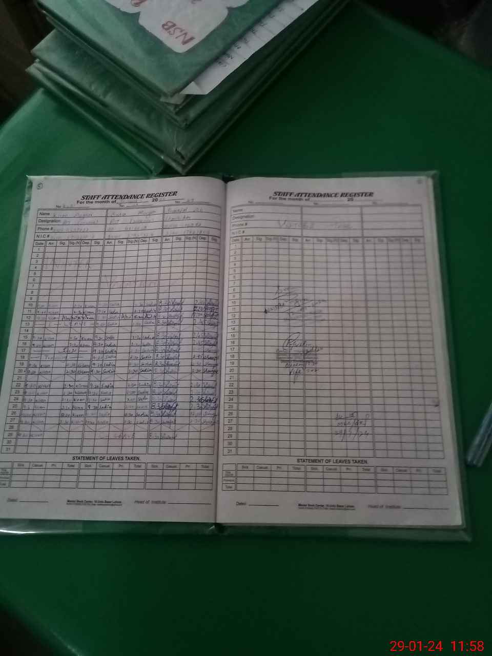 | CNIC | Full Name | Designation | R/C | Absence During Last Calender Month |