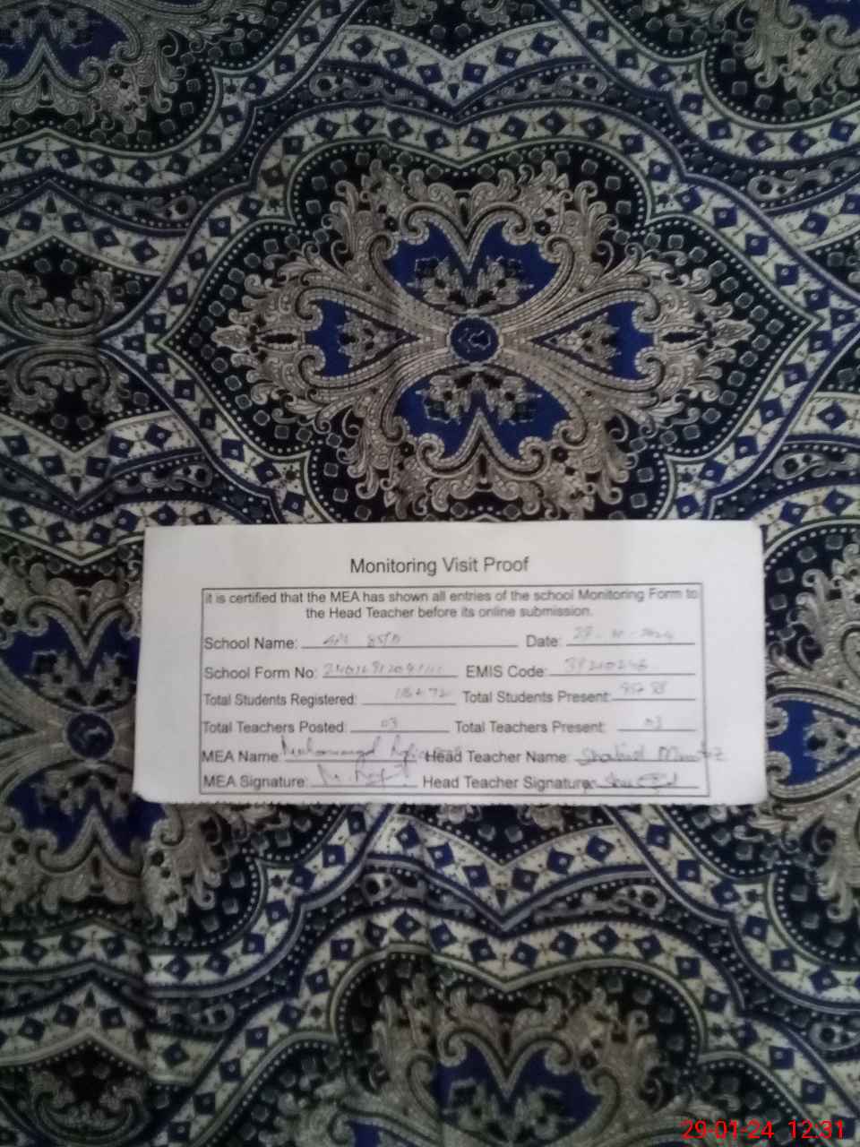 | Certified that this School was Inspected by the Undersigned MEA/DMO Today and the Information Stated Above is as Per Record. | |||||