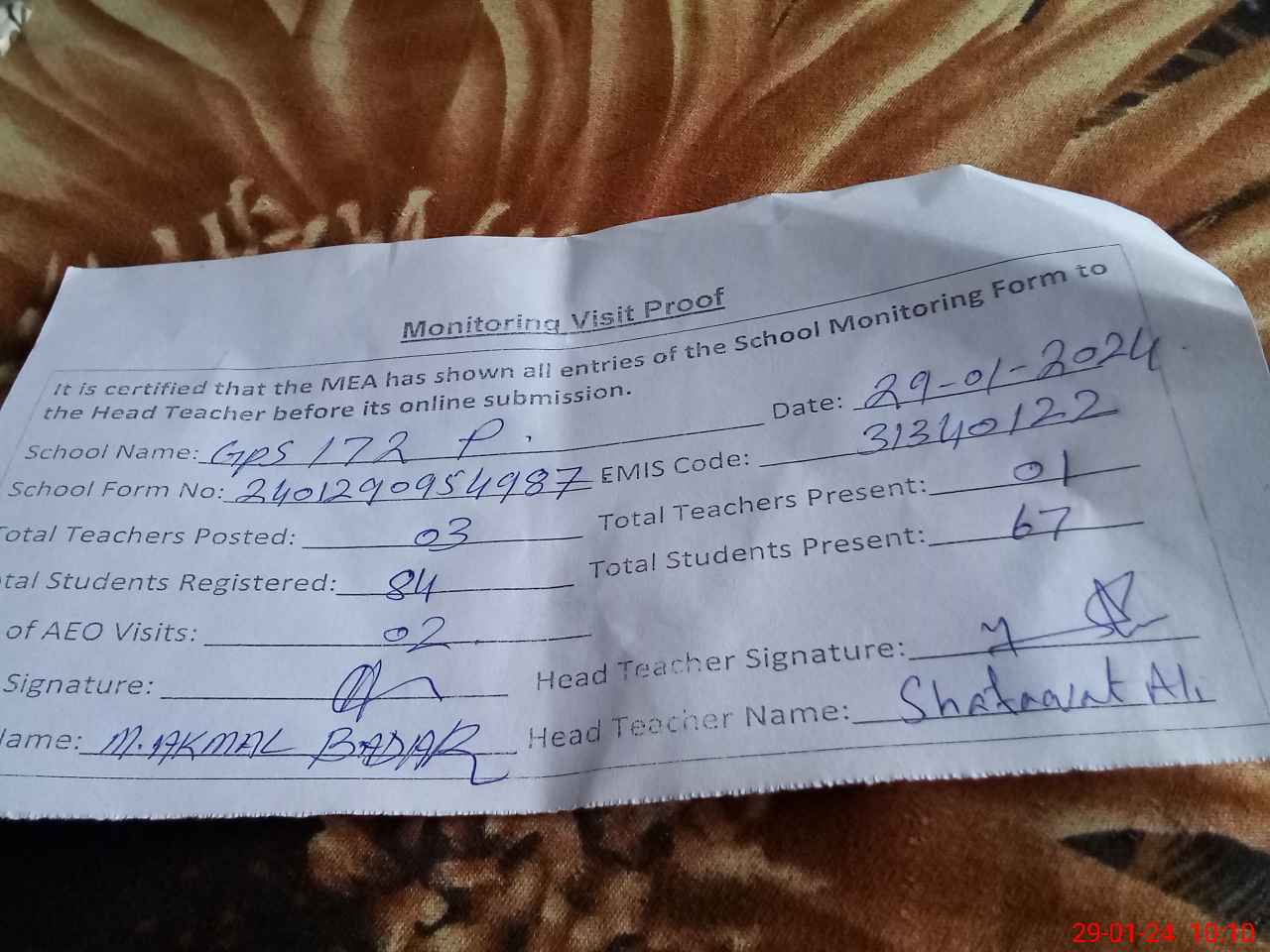 | EMIS Code: 31340122 | Name of School: GPS CHAK NO 172/P | |||