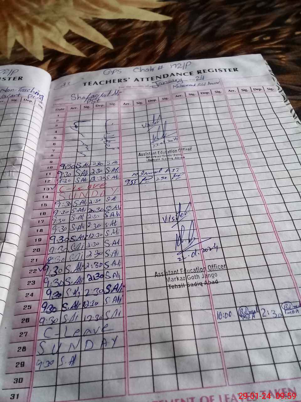 | 31**** | Mu**** Fa**** Kh**** | ESE | Contract | 0 | 0 | 0 | 0 | 0 | 0 | 0 | 0 | 0 | Absent (Un-Authorized) |