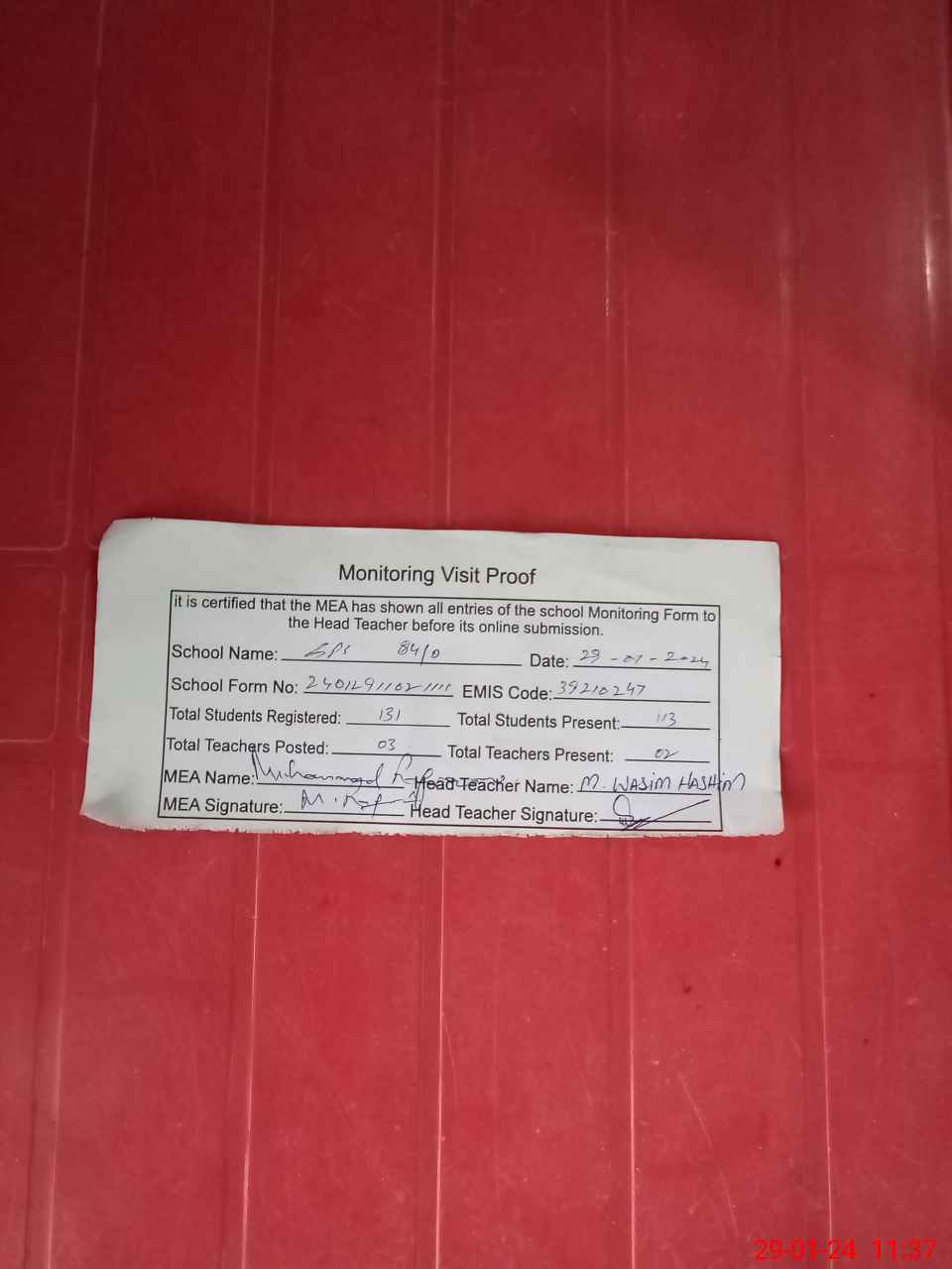| EMIS Code: 39210247 | Name of School: GPS CHAK NO. 84 / D | |||