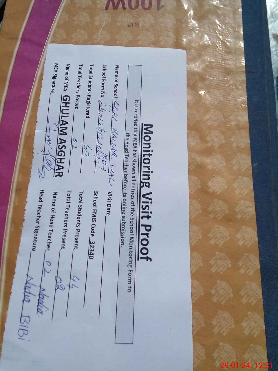 | EMIS Code: 32340220 | Name of School: GGPS KALLAR WALI NO. 1 | |||