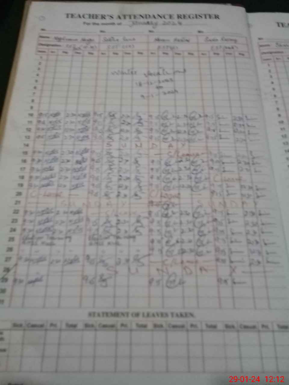 | CNIC | Full Name | Designation | R/C | Absence During Last Calender Month |