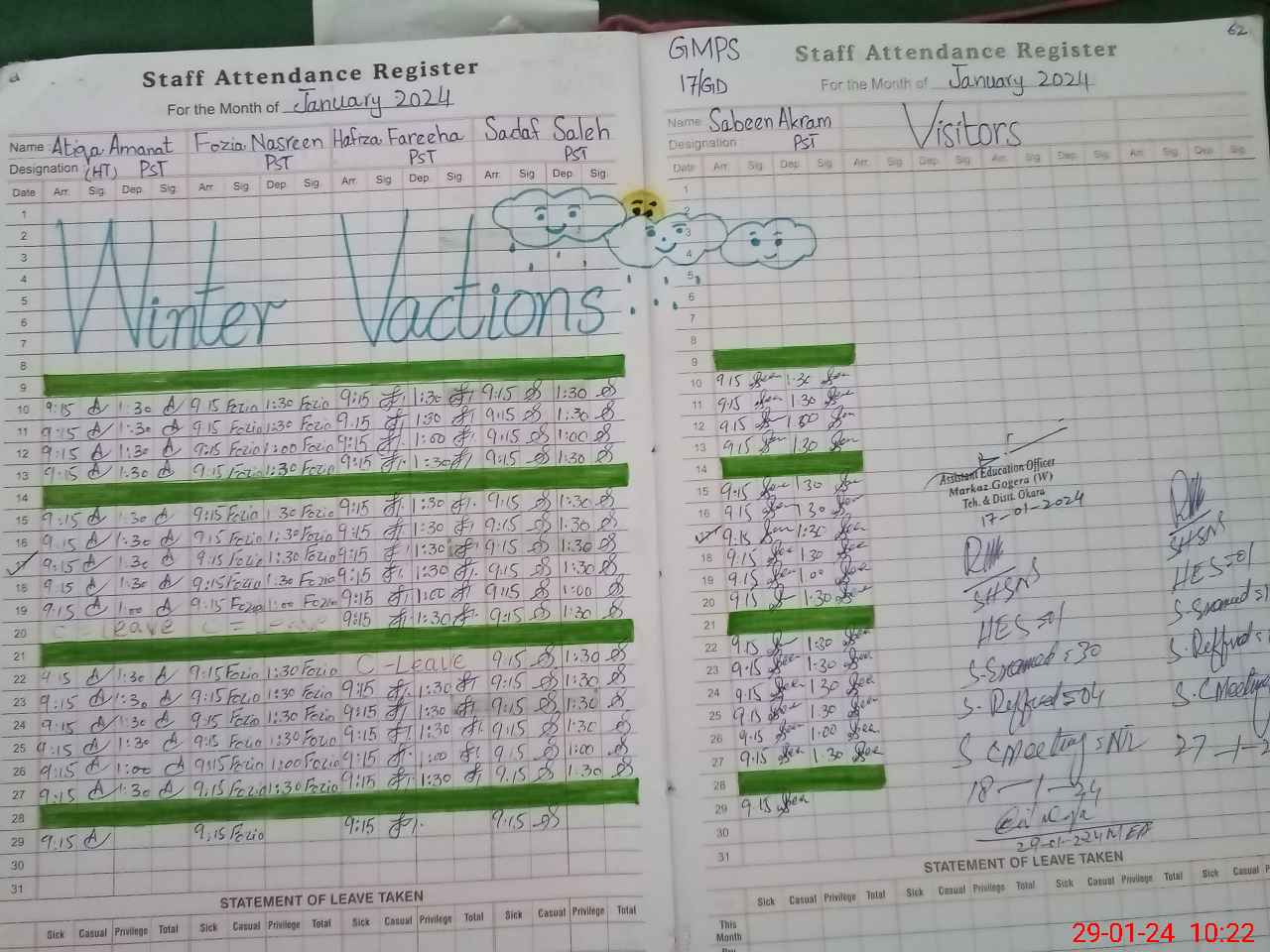 | Leave | Duty | Absent | Maternity | Medical | Ex- Pak |