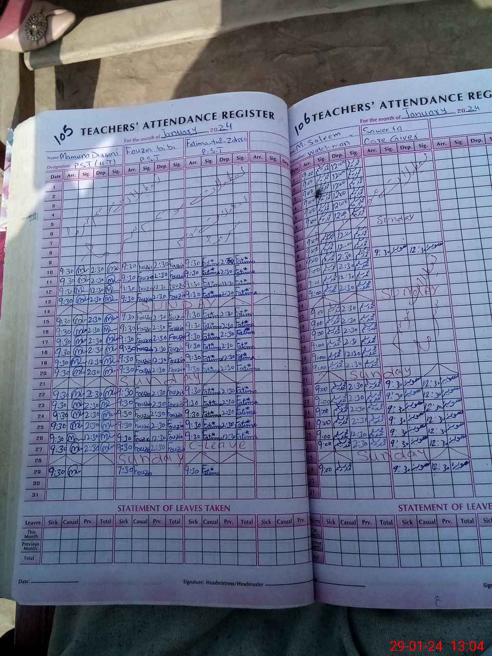 | Leave | Duty | Absent | Maternity | Medical | Ex- Pak |