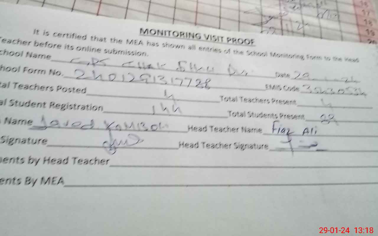 | EMIS Code: 35430534 | Name of School: GPS CHAK SHAH PUR | |||