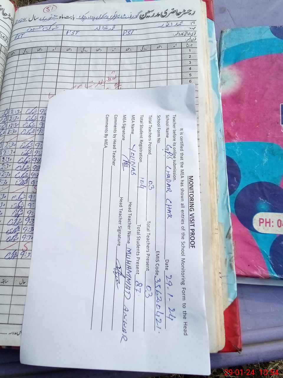 | Attendance Register | Head Teacher | MEA with School | Visit Proof |