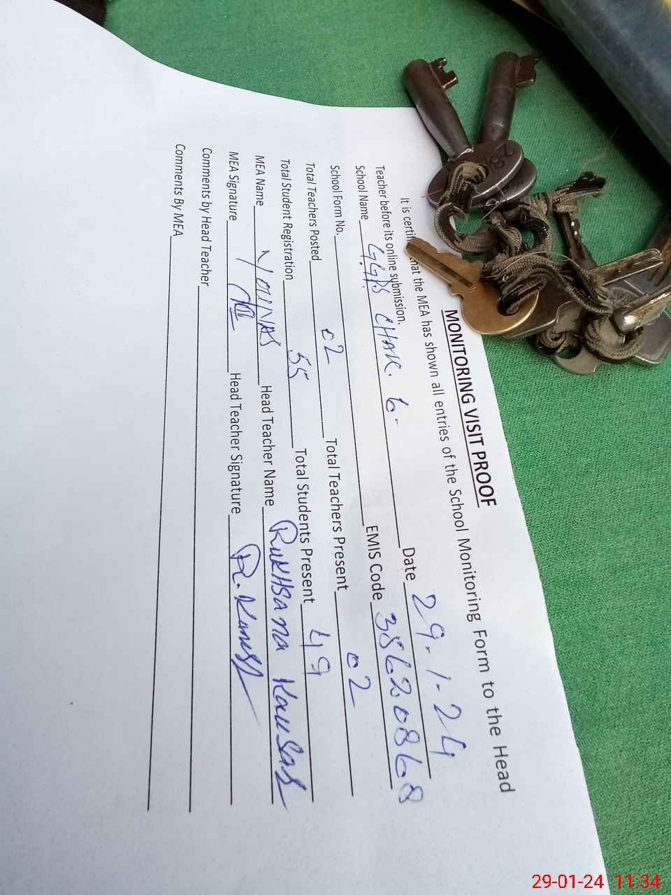 | Attendance Register | Head Teacher | MEA with School | Visit Proof |