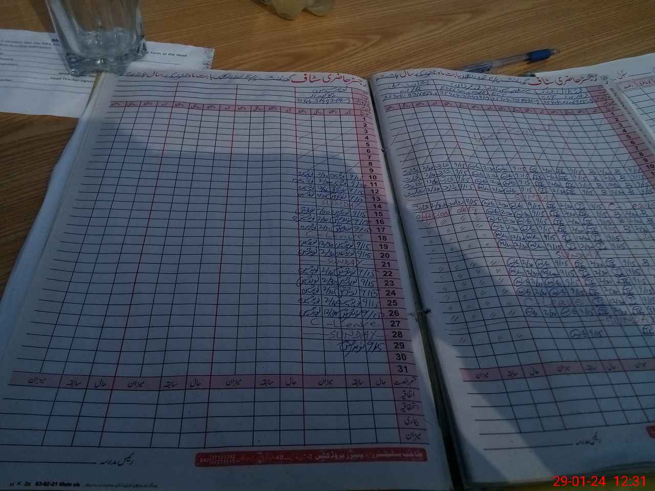 | CNIC | Full Name | Designation | R/C | Absence During Last Calender Month |
