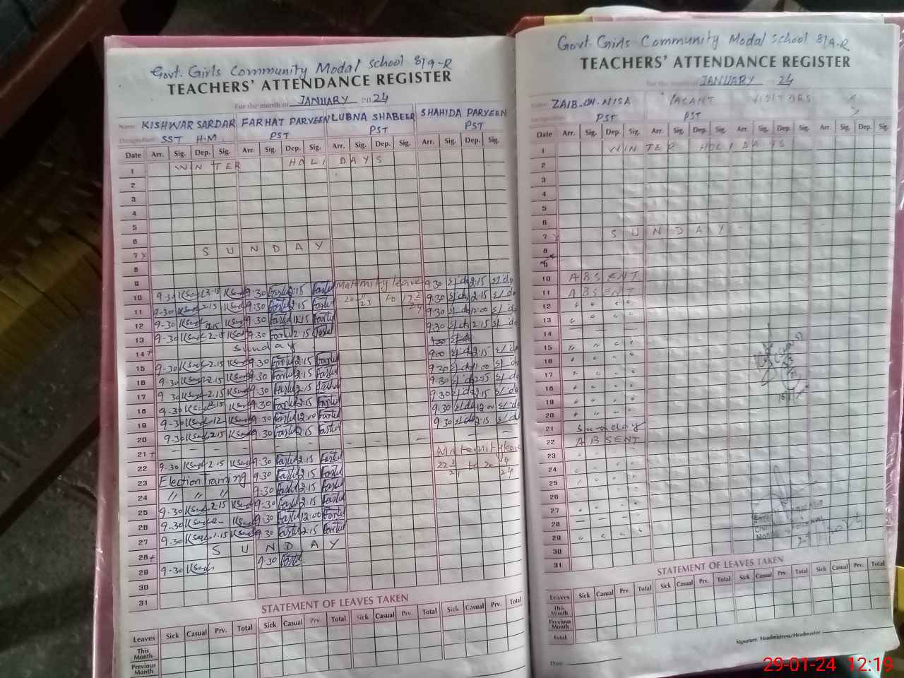 | Remarks (Use Separate Page if Required): PST ZAIB un Nisa absent un authorized since 21 January 2023 No action till now Inquiry in progress but progress is zero | |||||