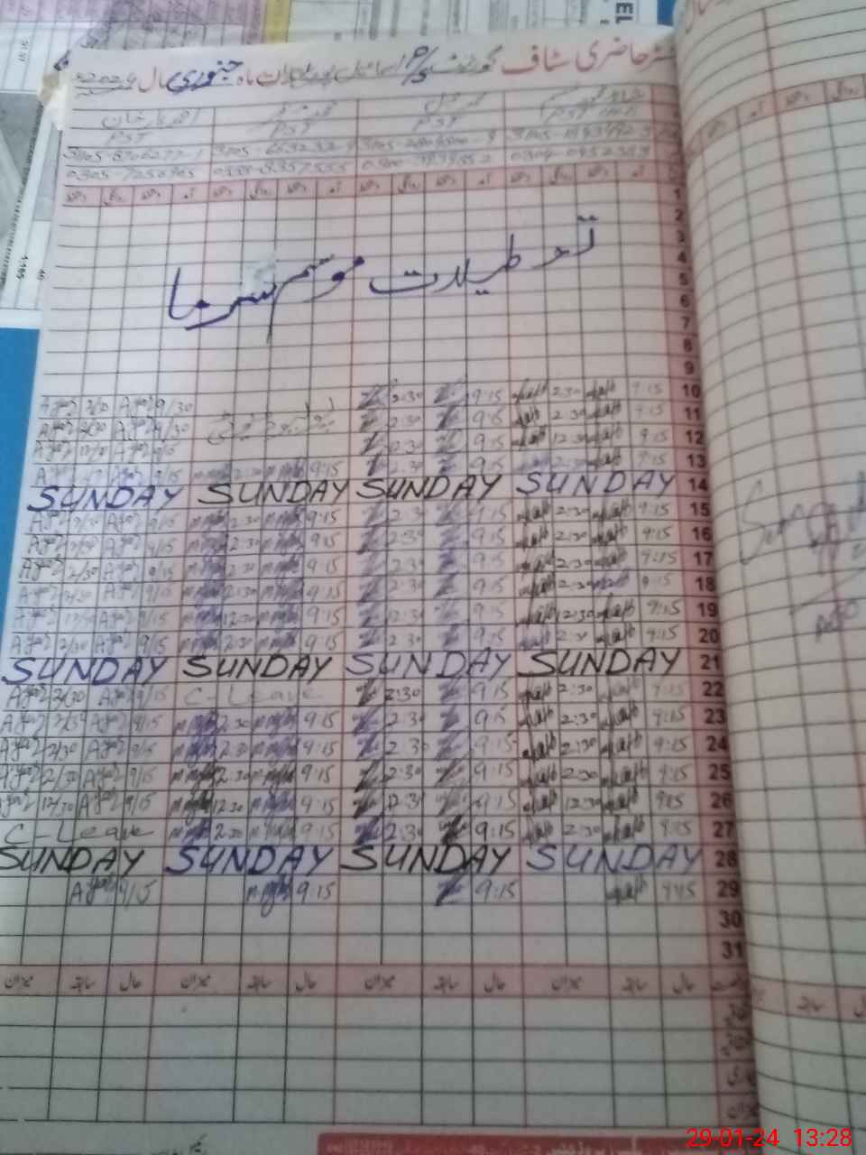 | CNIC | Full Name | Designation | R/C | Absence During Last Calender Month |