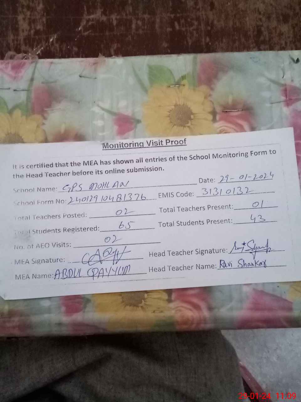 | EMIS Code: 31310132 | Name of School: GPS MOHLAN | |||