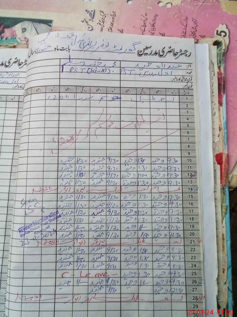 | Name: Ab**** Wa**** Designation: (School Headmaster's/Headmistress's) PST Phone/Cell Number: 03**** |