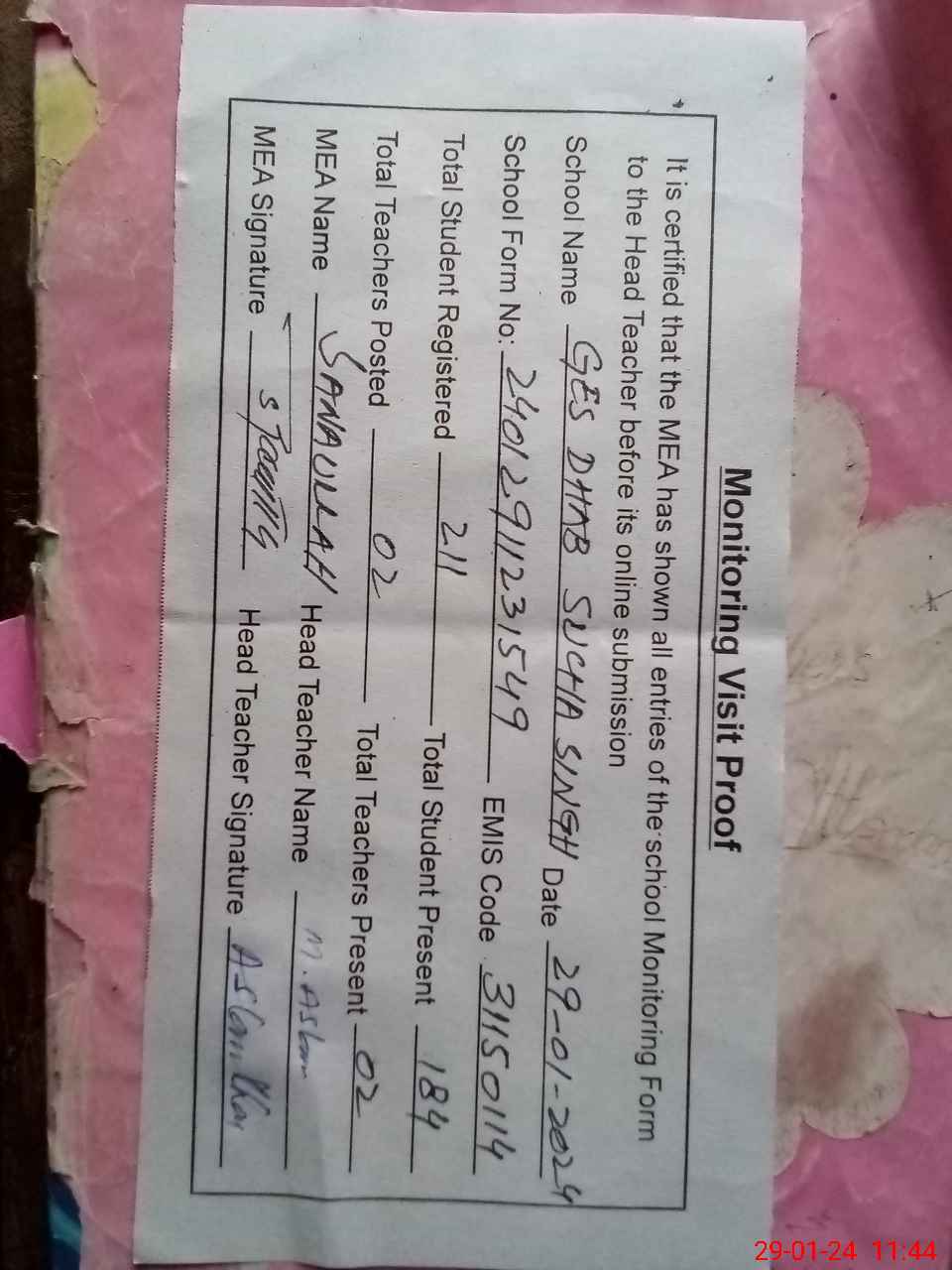 | EMIS Code: 31150114 | Name of School: GES DHAB SUCHA SINGH | |||