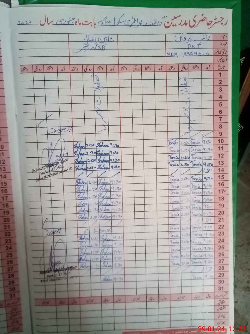 | Name: TA**** PA**** Designation: (School Headmaster's/Headmistress's) PST Phone/Cell Number: 03**** |