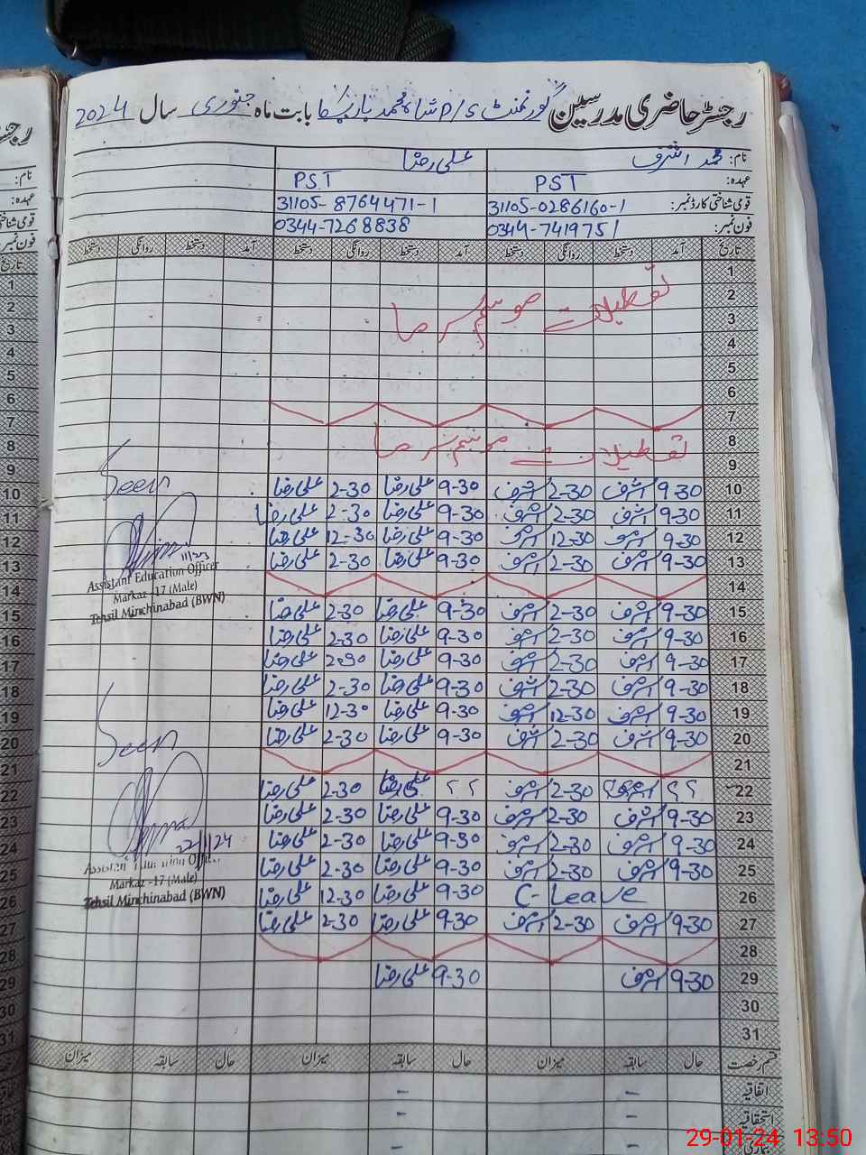 | Name: MU**** AS**** Designation: (School Headmaster's/Headmistress's) PST Phone/Cell Number: 03**** |