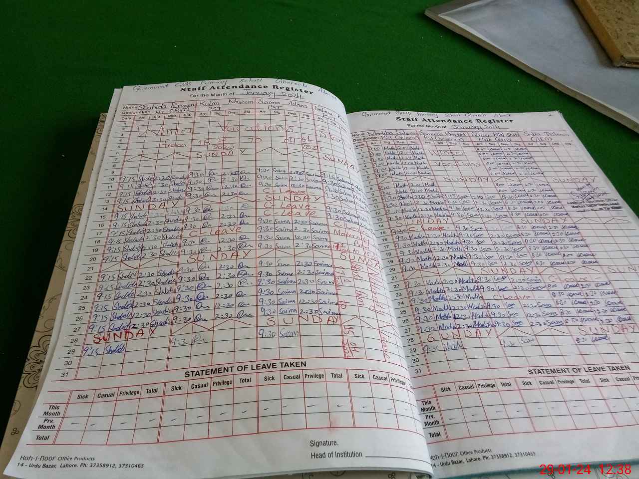 | CNIC | Full Name | Designation | R/C | Absence During Last Calender Month |
