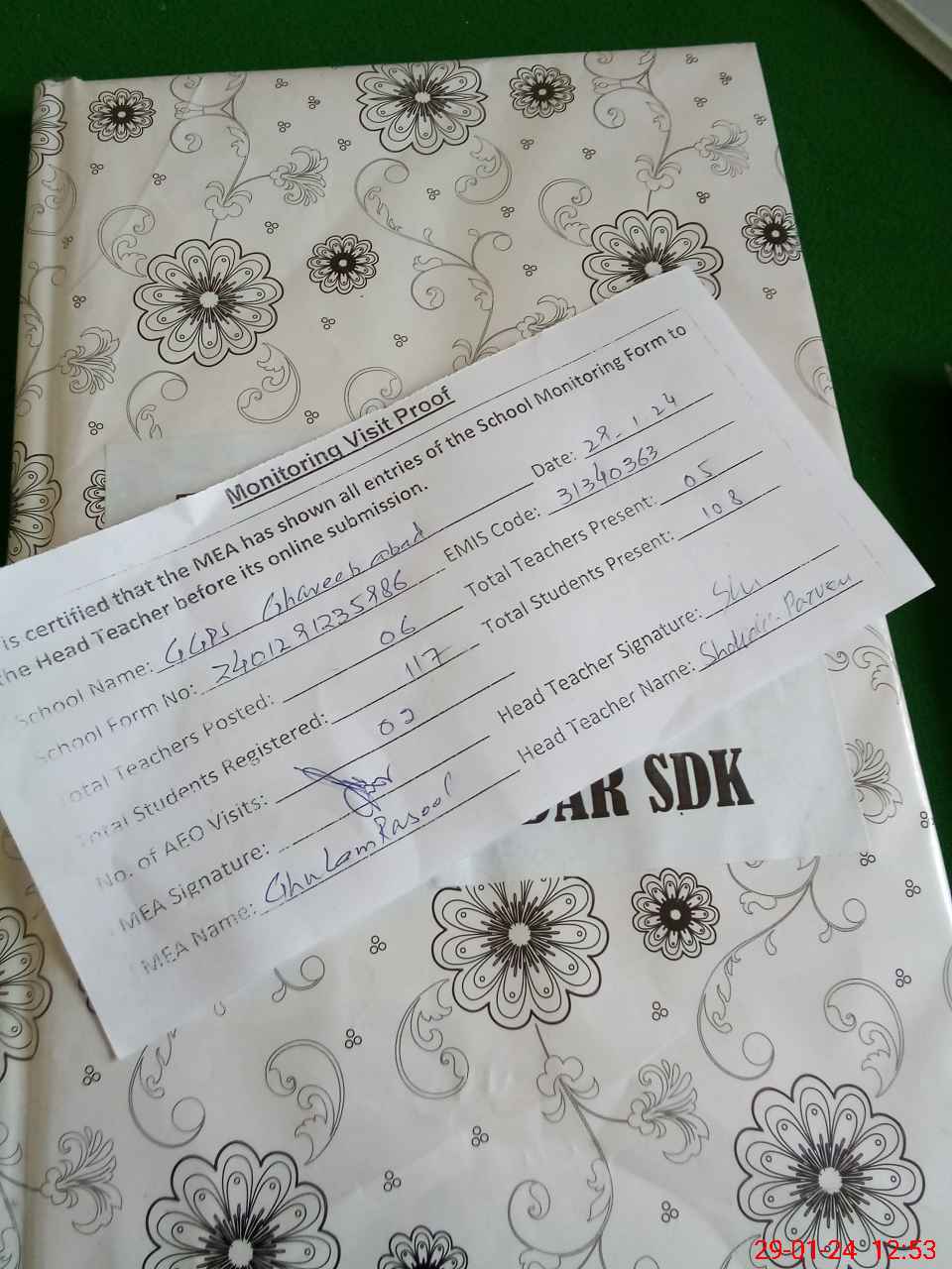 | Attendance Register | Head Teacher | MEA with School | Visit Proof |