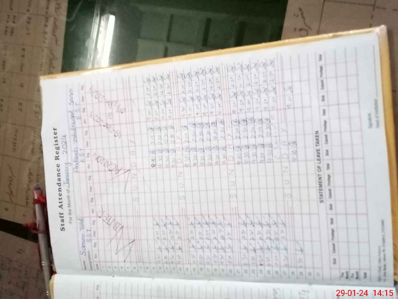| CNIC | Full Name | Designation | R/C | Absence During Last Calender Month |