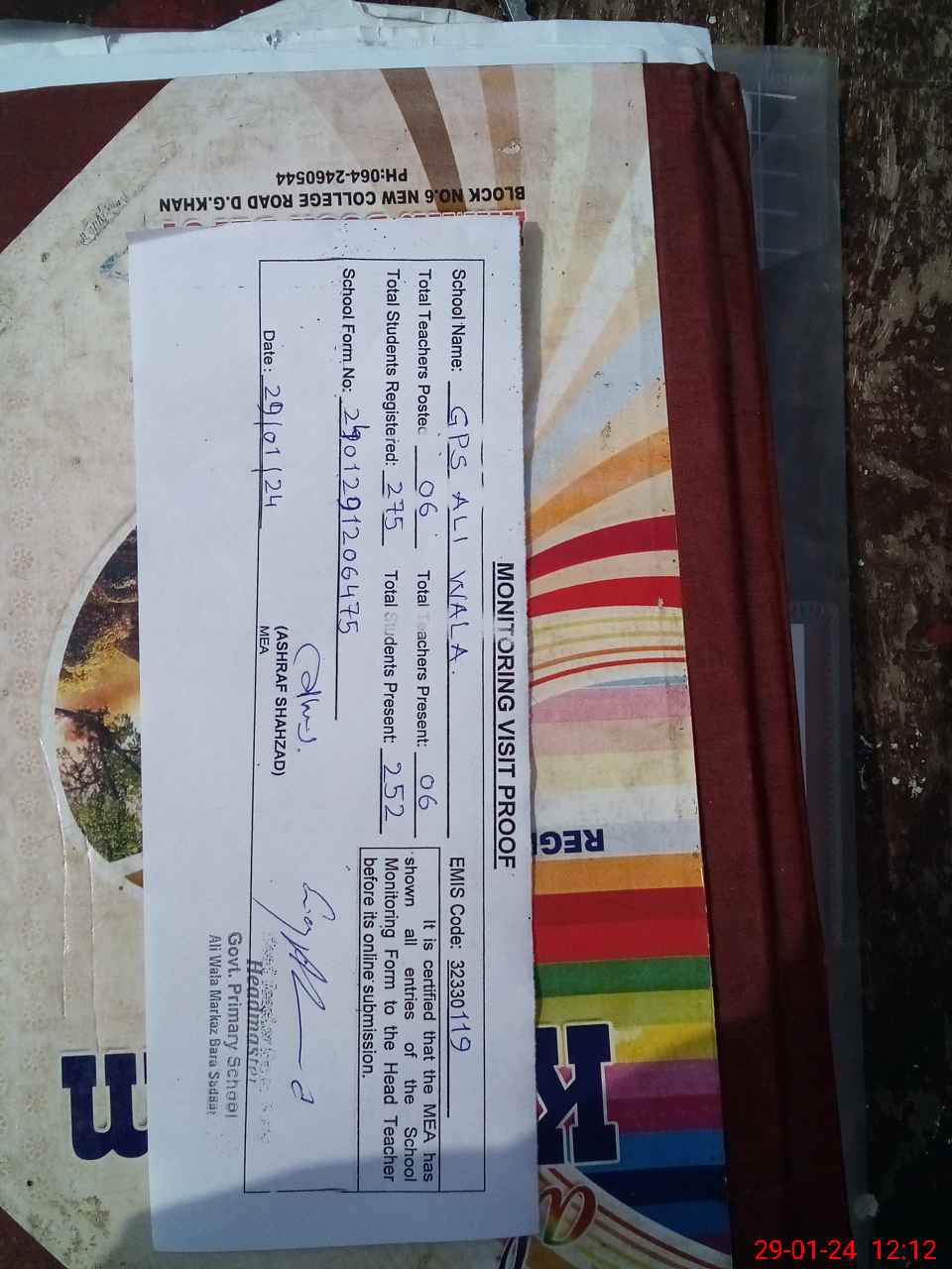 | Attendance Register | Head Teacher | MEA with School | Visit Proof |