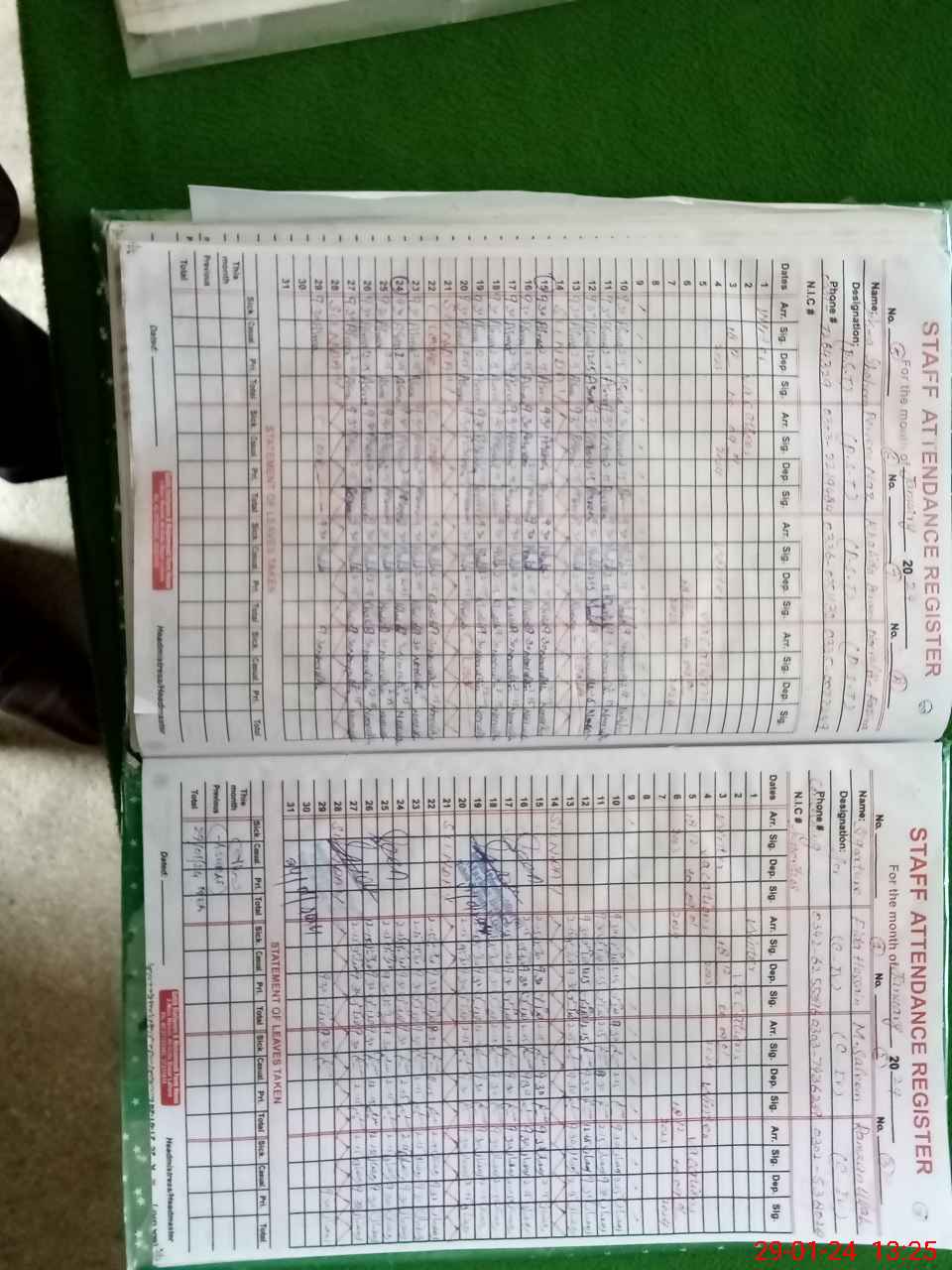 | CNIC | Full Name | Designation | R/C | Absence During Last Calender Month |