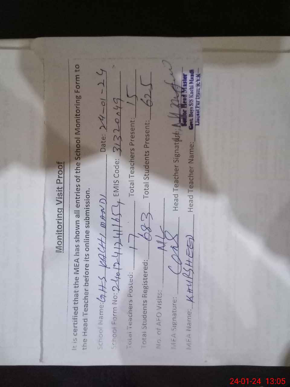 | EMIS Code: 31320049 | Name of School: GHS KACHI MANDI | |||