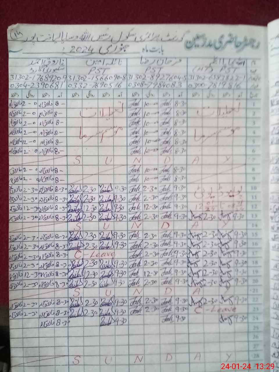 | CNIC | Full Name | Designation | R/C | Absence During Last Calender Month |